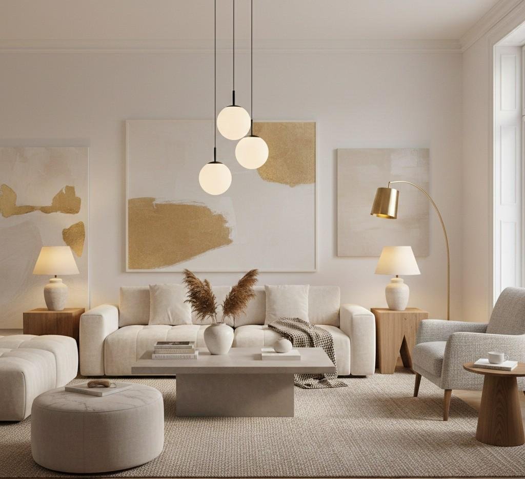 Living Rooms: Statement lighting, elegant table lamps, and decorative accents